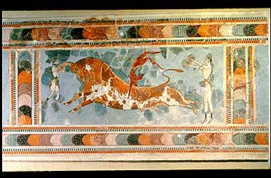 at Knossos depicting youths leaping over (or being gored by) a bull.