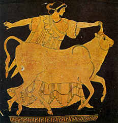 Europe being abducted by Zeus in the form of a bull