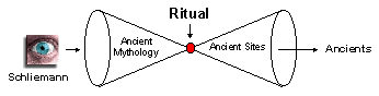 The process of using myths to find and excavate ancient sites is the